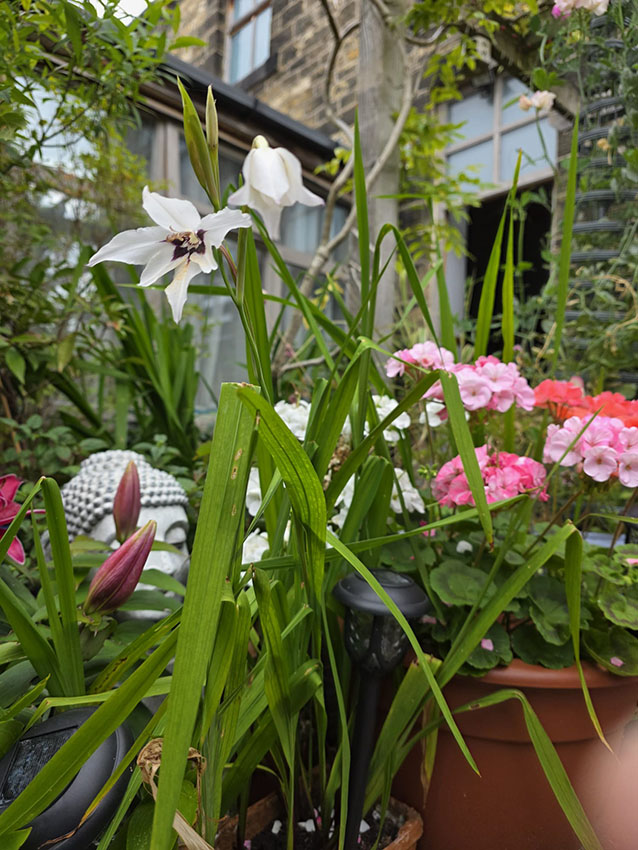 4 – Grateful that the Spider Orchid Lily bulbs I added to the garden this year have finally flowered – nothing to do with spiders and not orchids either…