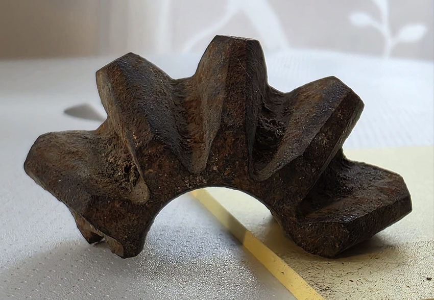 5 – I collect odd bits of detritus to use in collages – this one (probably a piece of gearing from a Bradford Mill or more prosaically a piece of a car engine) is a bit chunky but it reminds me of the 30’s Sunrise motif…