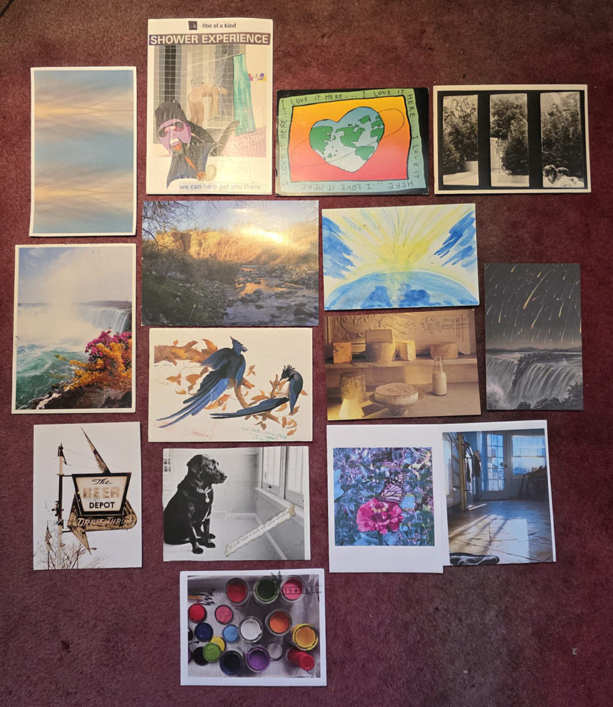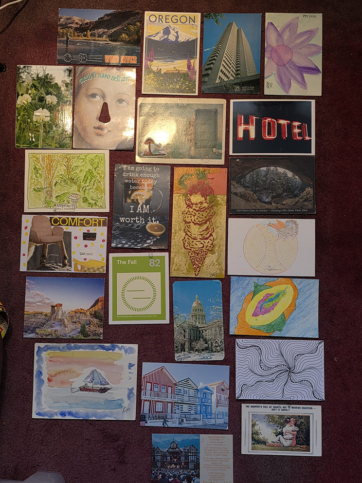 9 – on the door mat awaiting our return, were 10 more cards from the Poetry Postcard Festival, from which I have received 22 out of 31 from my group so far and 16 from the International list. Most of the festival’s participants are American, but everyone wants to exchange cards with someone outside the US and so we Internationals appear on an additional list. There is no obligation to reply to these “bonus” cards, but if people put their name and address on the ones they send, I feel they are dying to get one back, so I have about 4 more to send still…