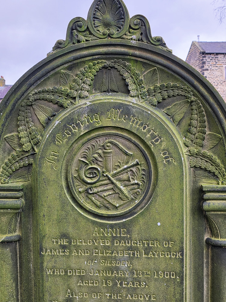 4 – This is my favourite gravestone amongst all those of our quiet neighbours at the back of our house (upper right) – must have been a musician…