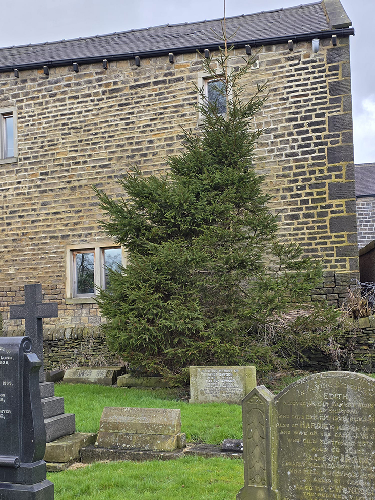 5 – Not sure whether this is a grat or not, on the one hand it shows the resilience of nature, on the other, the roots of this tree might affect our house foundations and the top of the tree is now growing across the view from our kithchen window. When we came back from Crete in 2021 after Covid, we found that someone had taken it upon themselves to cut off the top of this Christmas Tree (originally planted by a neighbour post-Christmas) at the edge of the graveyard behind the house. The truncation did not stop the tree growing and it has put out a new crown which grew 4 feet in just the last year!
