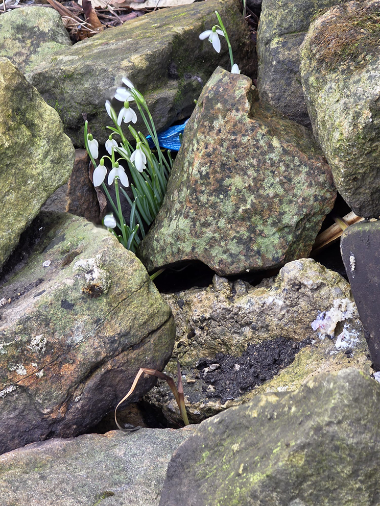 Nature will force it’s way – Snowdrops coming through a pile of rocks…