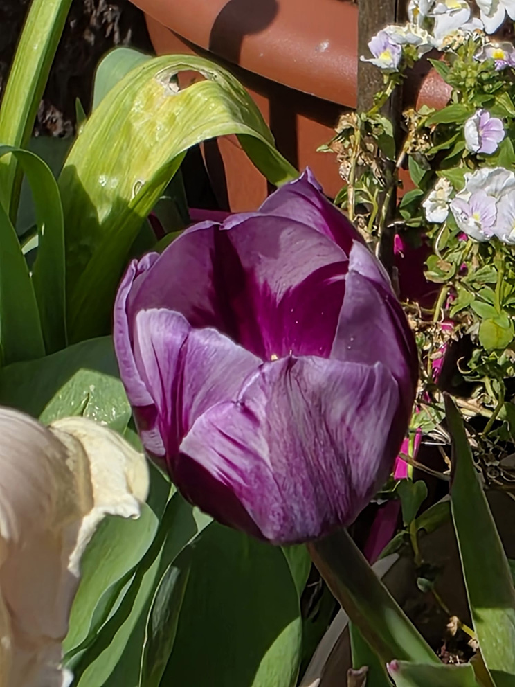 The first of the Dutch bulbs has flowered – on the small size this first year and I am not sure which one it is, not the fringed but it could be either the Parrot or the “Black”…
