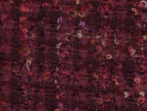 Above, Bouclé yarn being made and on the below is woven Bouclé fabric. (Wikipedia)
