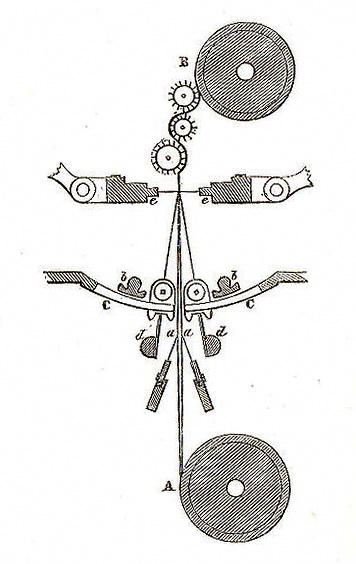 - C – Represents the combs or guides, with two brass-bobbins in their carriers.3