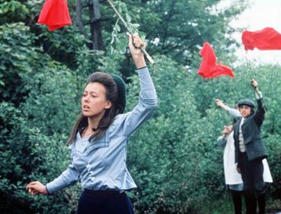 Jenny Agutter waving her red petticoat to prevent disaster in the Railway Children (1970) https://katedaviesdesigns.com/2023/11/02/red-hats-and-petticoats/